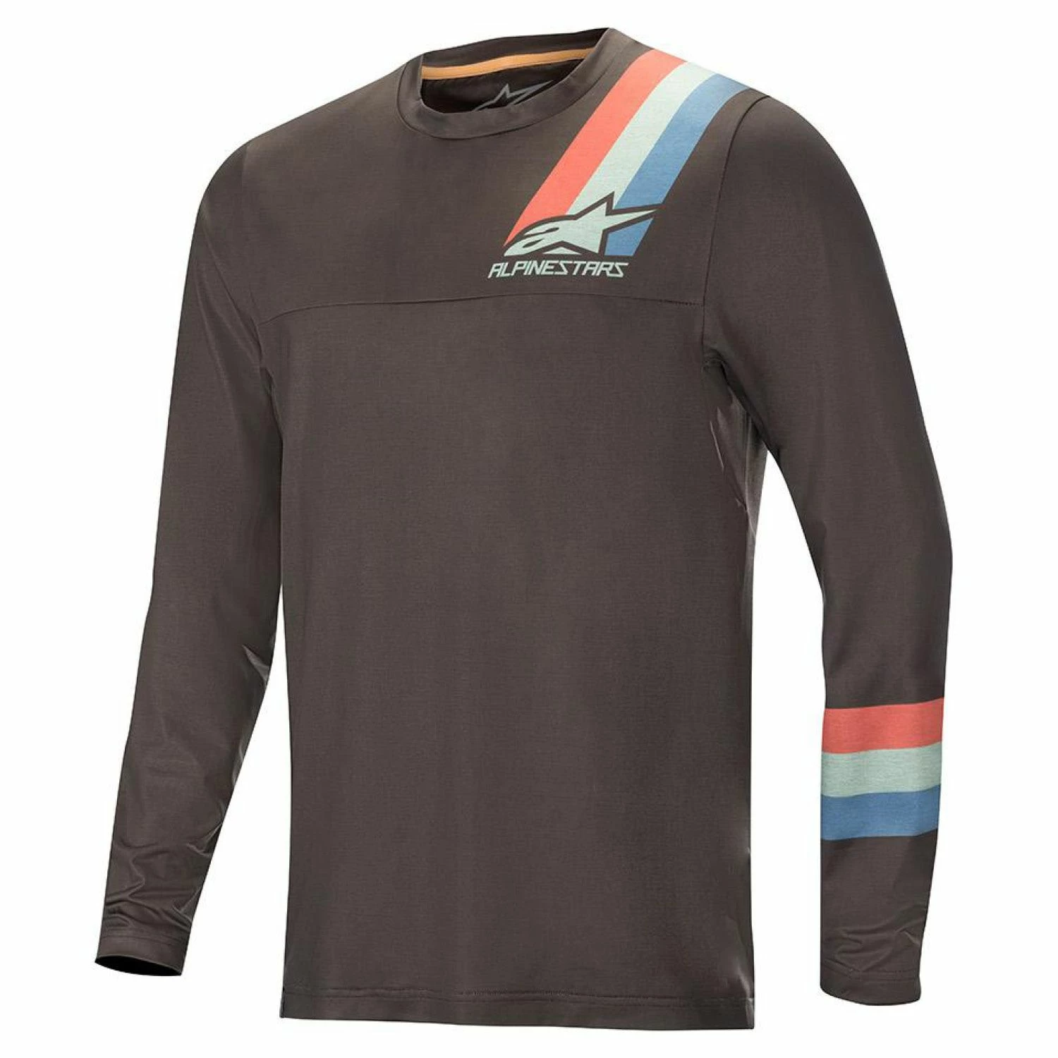 Funktionel MTB-jersey til mænd med lange ærmer konstrueret af et avanceret blandet poly-tekstil for forbedret holdbarhed og farvefasthed og for at fremme et højt niveau af fugttransport.