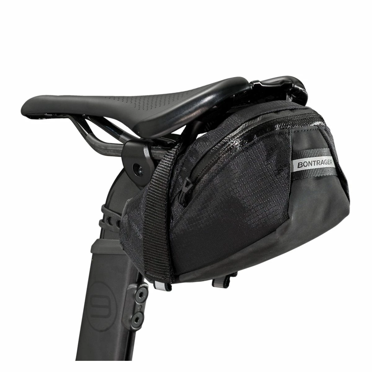 Fastgøres med sadelbeslag på cyklen ved hjælp af velcrobånd